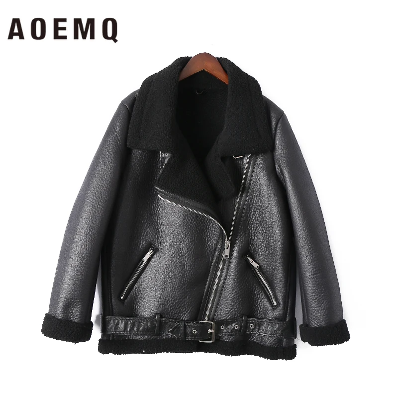Sale AOEMQ Retro Neue Revers und Samt Padded Pelz Einem Mantel Warm Mode PU Leder Lamm Haar Motorrad Kle