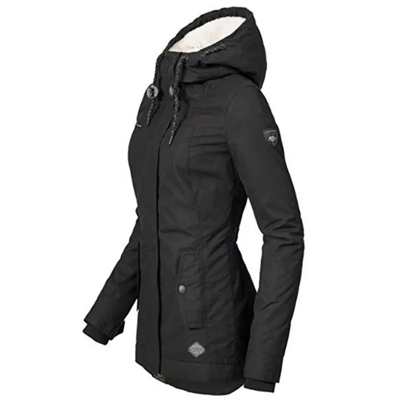 Best Frauen Jacken Casual Winter Warme Einfache Schwarz Gothic Schlank Hooded Zipper Tasche Solide Mänte