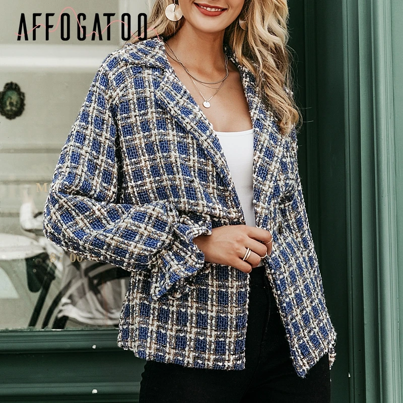 Popular Product Affogatoo Beiläufige lose frauen plaid tweed jacke mäntel Laterne hülse streetwear mäntel Elastisch
