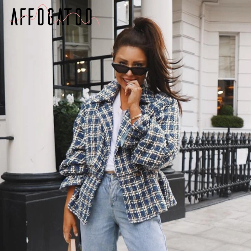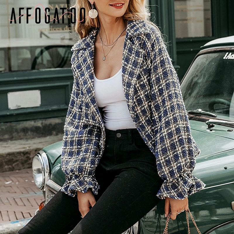 Post a Comment for "Best Affogatoo Beiläufige lose frauen plaid tweed jacke mäntel Laterne hülse streetwear mäntel Elastisch "