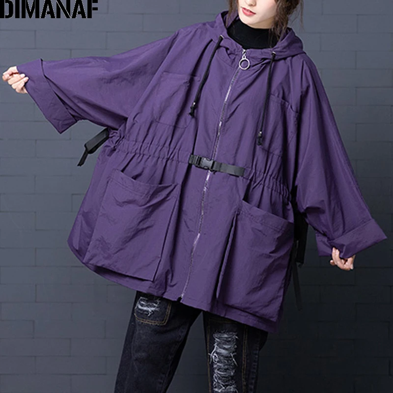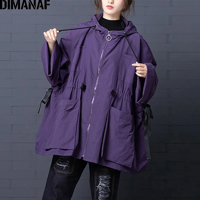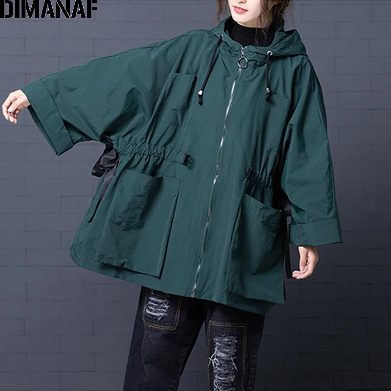 DIMANAF Oversize Women Jacket Coat Autumn Winter Outerwear Zipper Cardigan Vintage Batwing Sleeve Loose Plus Size Hooded Clothes :Click Here