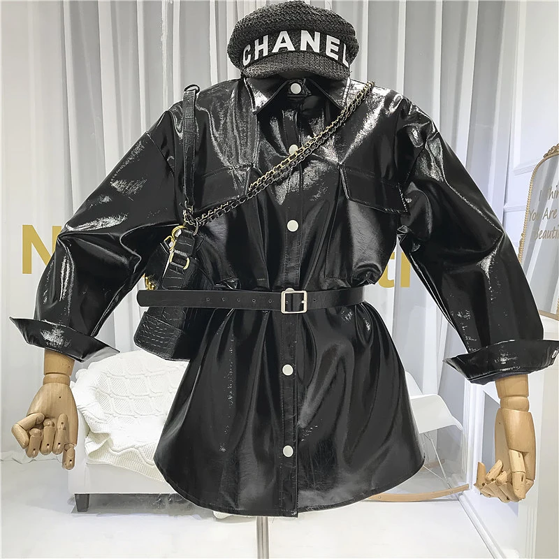 The Latest ALPHALMODA Herbst 2019 Neue Designer der blickfang Gürtel-gebunden Helle PU Leder Bekleidungs Mid-l