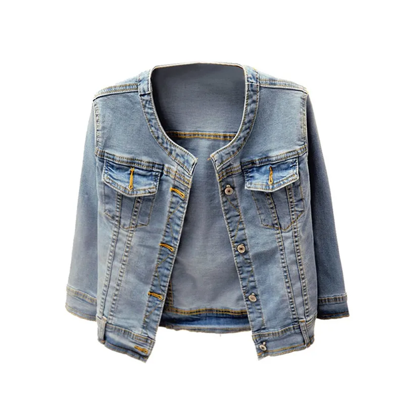 Popular Product Denim Jacken Trendy XU Gewaschen Drei Viertel Sleeve Stretch Kragen Kurze Jeans Mantel