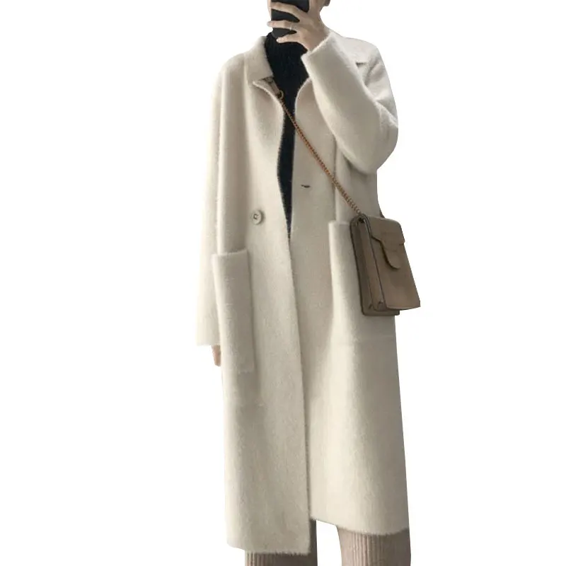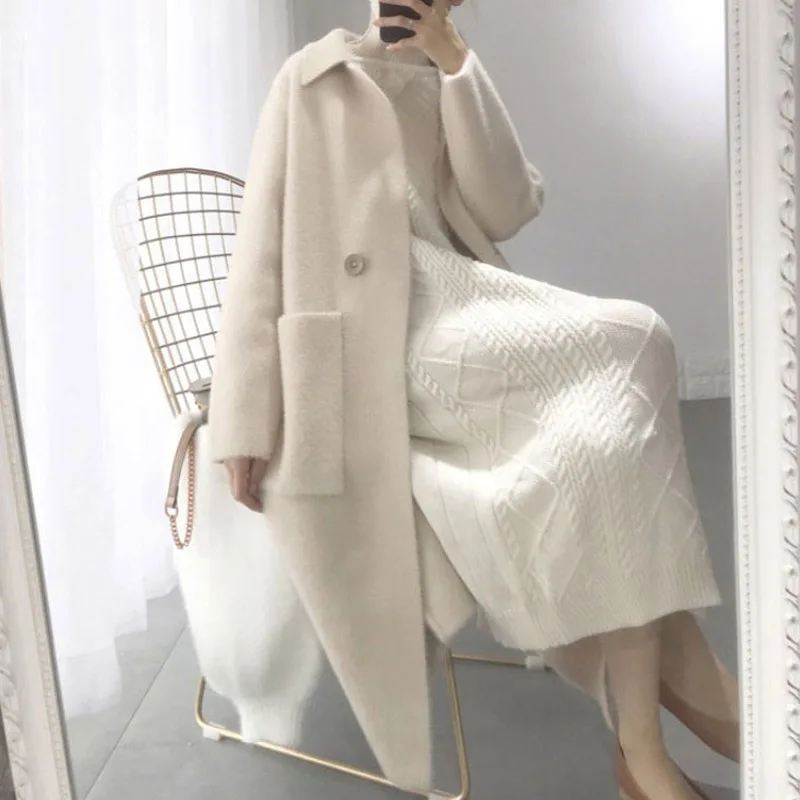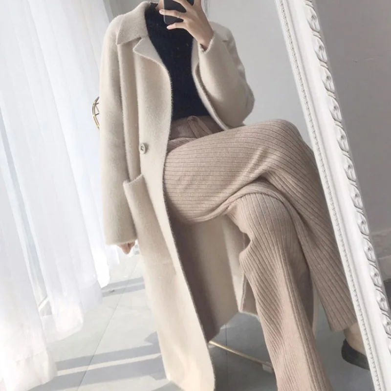 2019 Women Cashmere Long Coat Elegant Turn Down Collar Woolen Coat With Belt Open Stitch Design Winter Warm Coat Casaco Feminino :Click Here