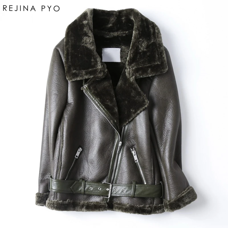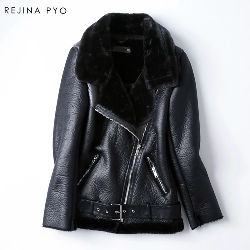 BIAORUINA Women's PU Patchwork Lamb Winter Moto&Biker Style Jacket with Belt Female Casual Keep Warm Thick Coat Outerwear :Click Here