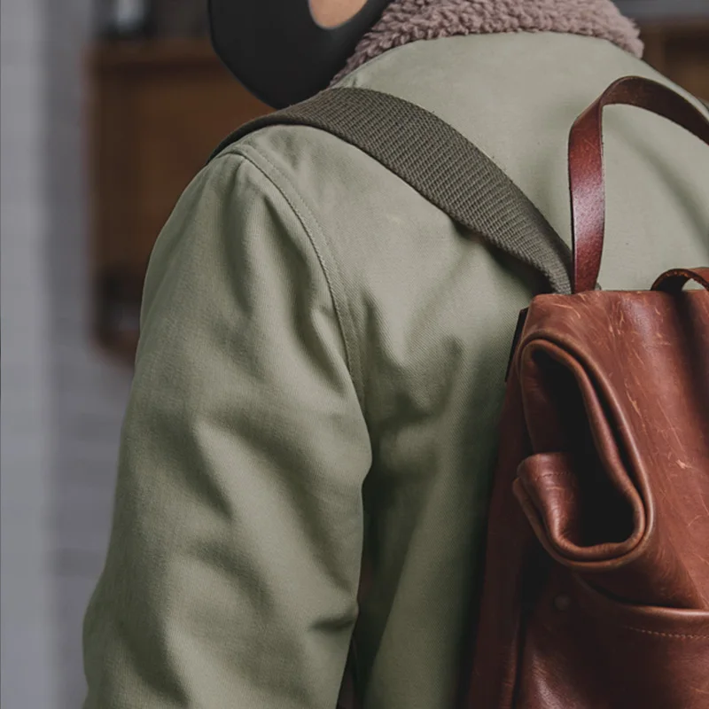Goods Männer Vintage Sherpa Fleece Gefüttert Winter Jacke N-1 Taste Unten Baumwolle Jacke Grün Braun
