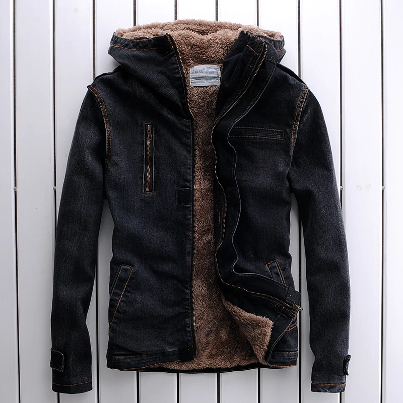 Best Product TANG 2019 Für MaleWinter Denim Jacke Mit Kapuze Pelz Gefüttert Schwarz Motorrad Biker Stil Designer