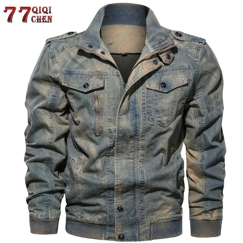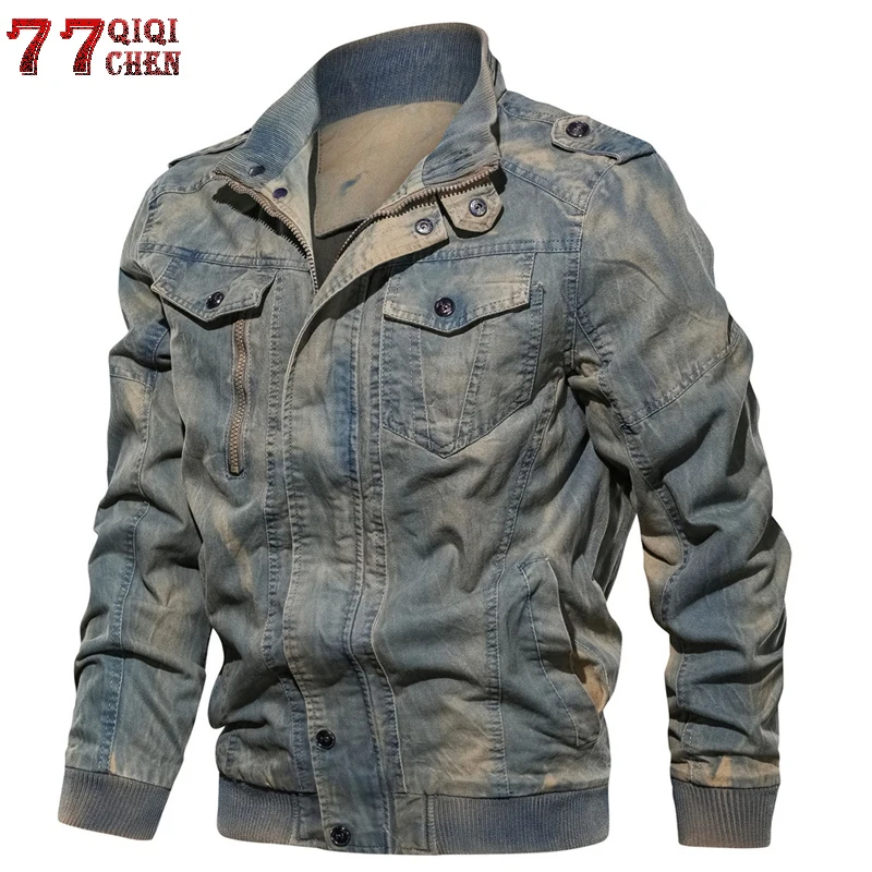 New Arrival Herren Denim Jacke Große Größe 6XL Militärische Taktische Jeans jacke Feste Beiläufige Air Force Pi