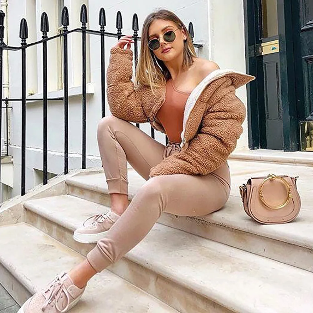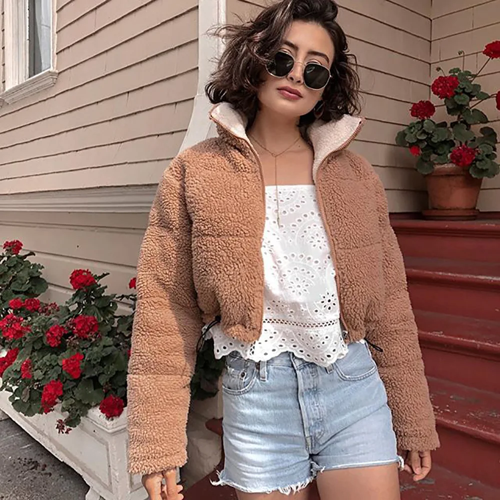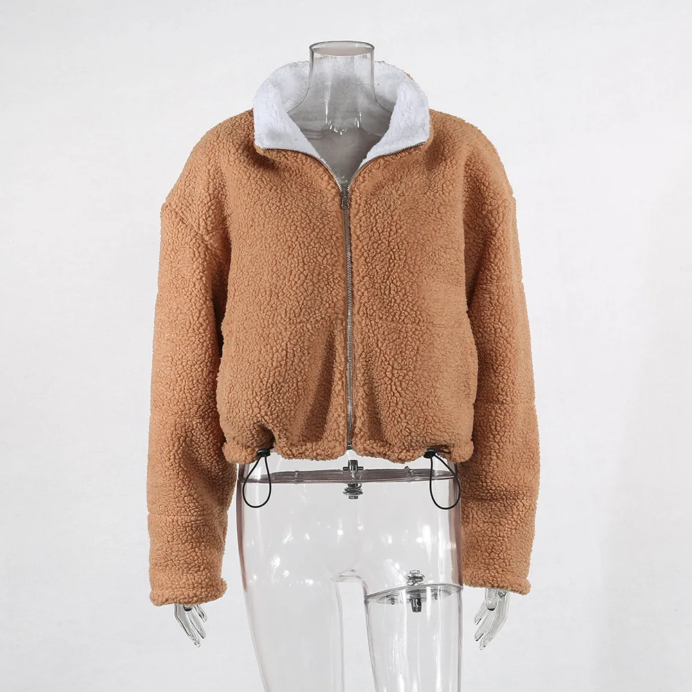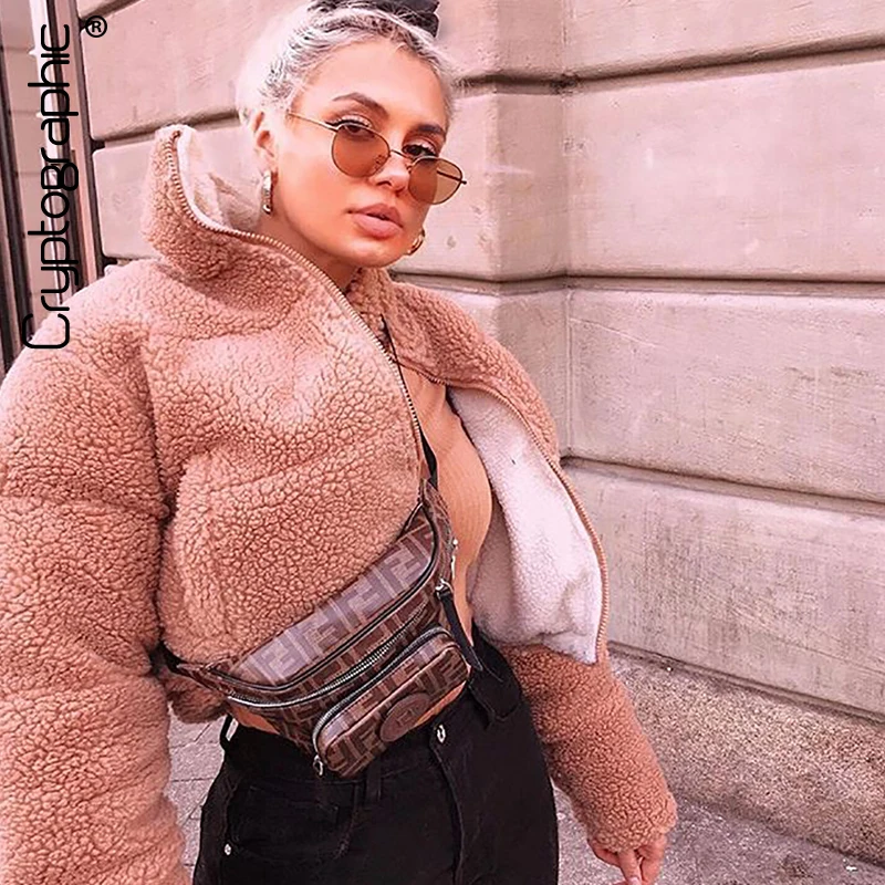 Big Deal Kryptographische Casual Faux Pelz Plüsch Mäntel für Frauen Mandarin Kragen Langarm Zipper Vorne Cro