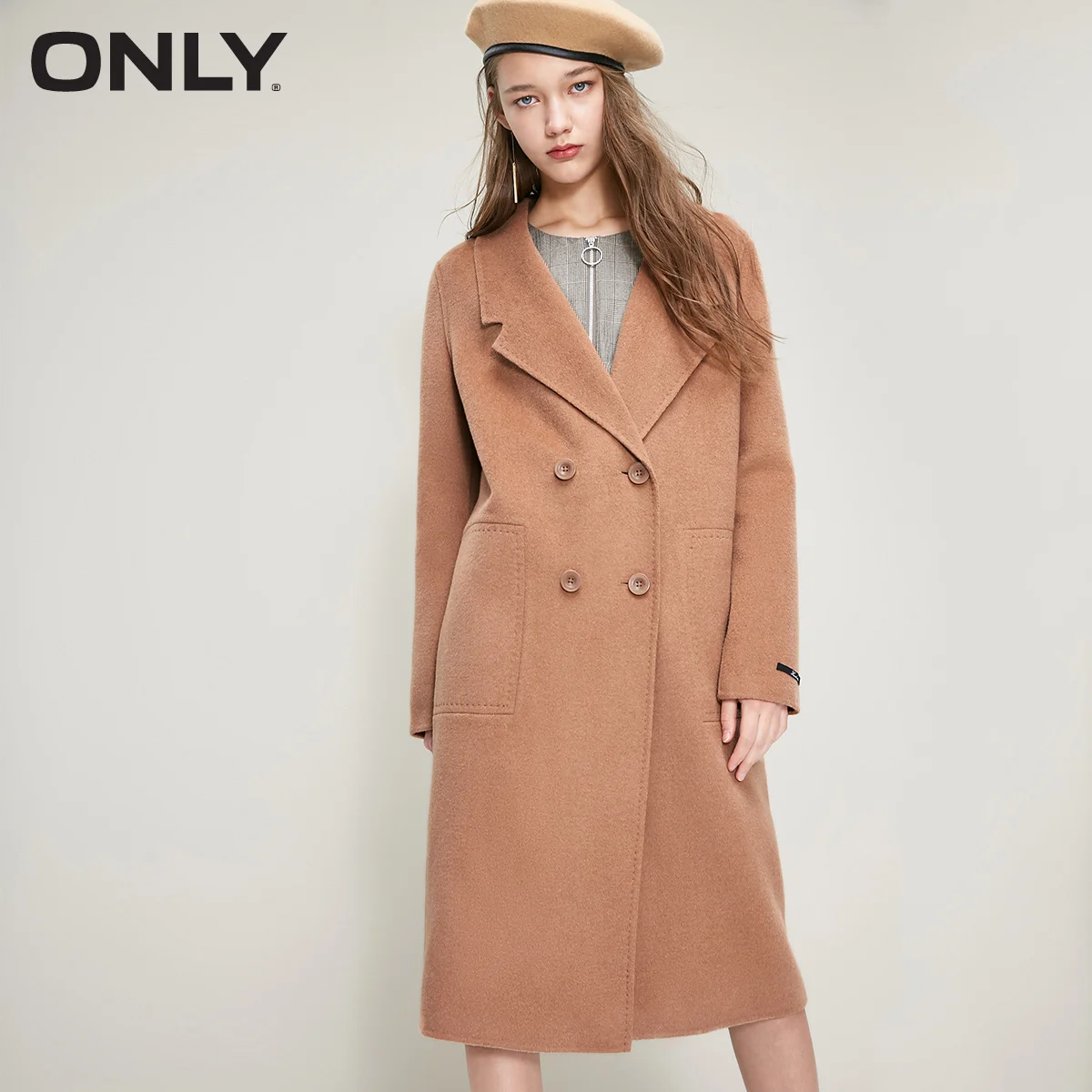 ONLY womens' winter new wool double-breasted long woolen coat Back windshield design Rolling cuff|11846U505 :Click Here