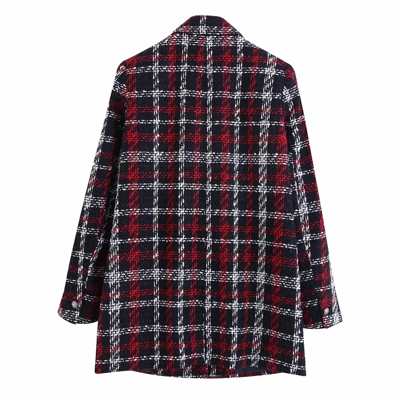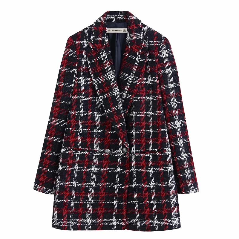 New Arrival 2019 frauen stilvolle überprüft plaid print mantel weibliche mode zweireiher freizeit langarm casua