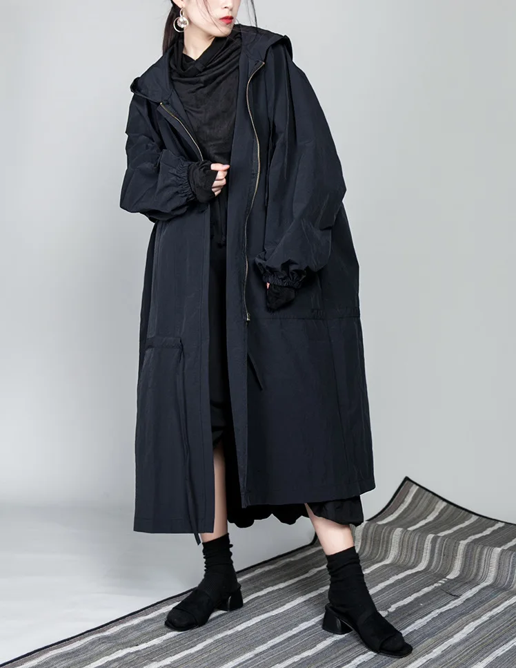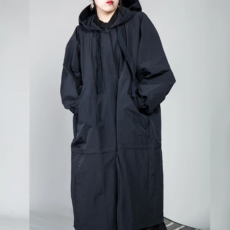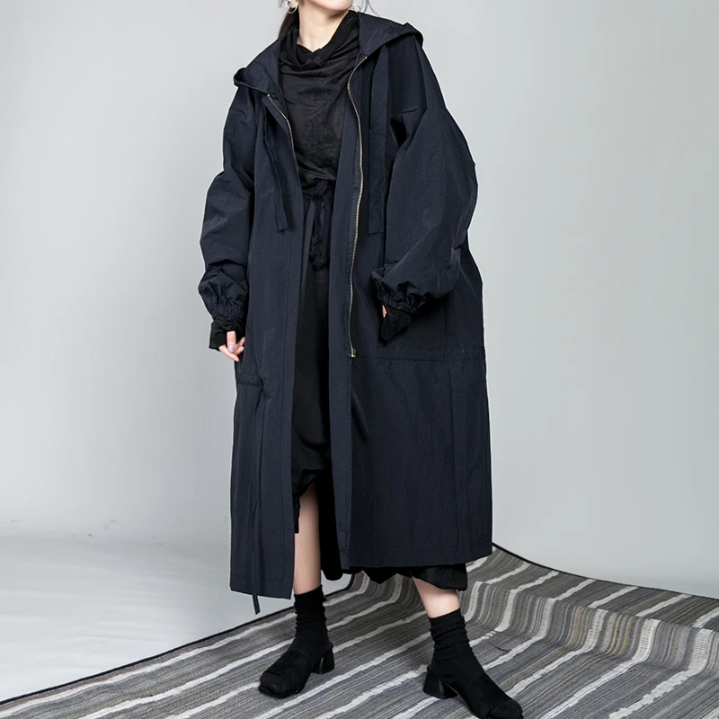 Best Product [EAM] 2020 Neue Frühjahr Kordelzug Volle Hülse Mit Kapuze Kragen Lose Zipper Dünne Große Größe Lang