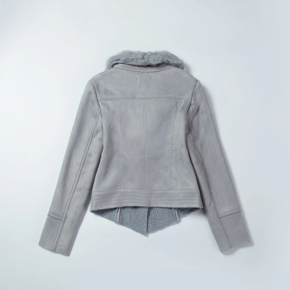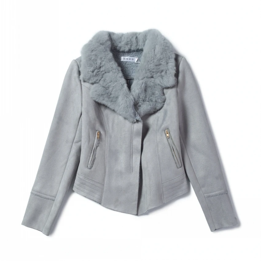 The Latest Echt Fotos Winter Kleidung Frauen Wildleder Mantel Kurze Jacke Pelz Kragen Zipper Starke Dünne Outw