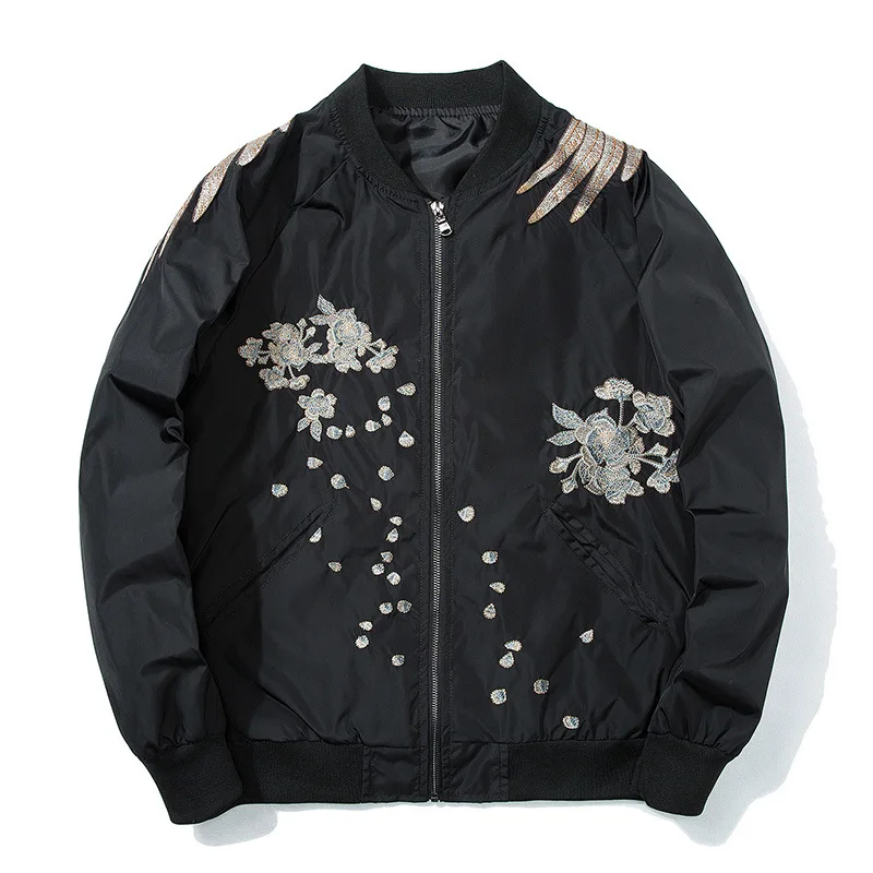 Mens Bomber Jackets Embroidery Wing Feather Winter Pilot Jacket Fashion Hip Hop Baseball Jacket Japanese Streetwear Youth :Click Here