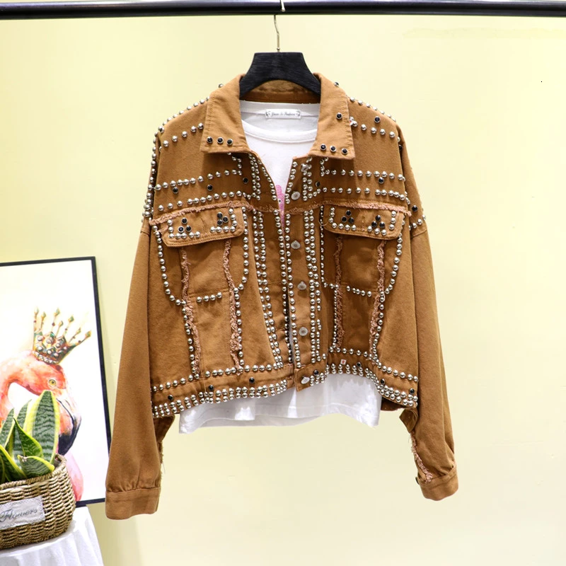 14 Styles Hand Studded Rivet Denim Jacket Women Loose Short Jackets Ladies High Quality Jeans Jacket Basic Coats Streetwear :Click Here