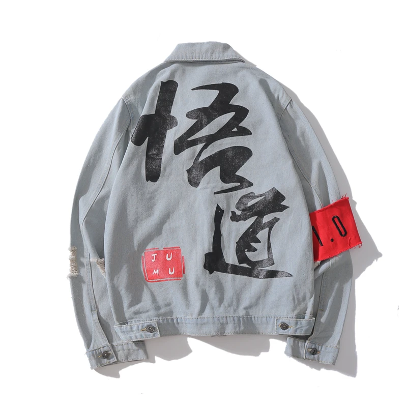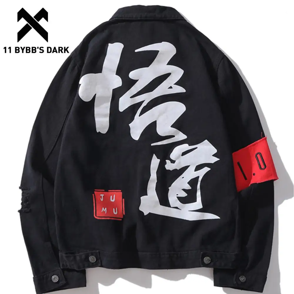 Big Deal 11 BYBB'S DARK Hüfte Hop Denim Jacke Männer Chinesischen Charakter Druck Windjacke Casual Baseball