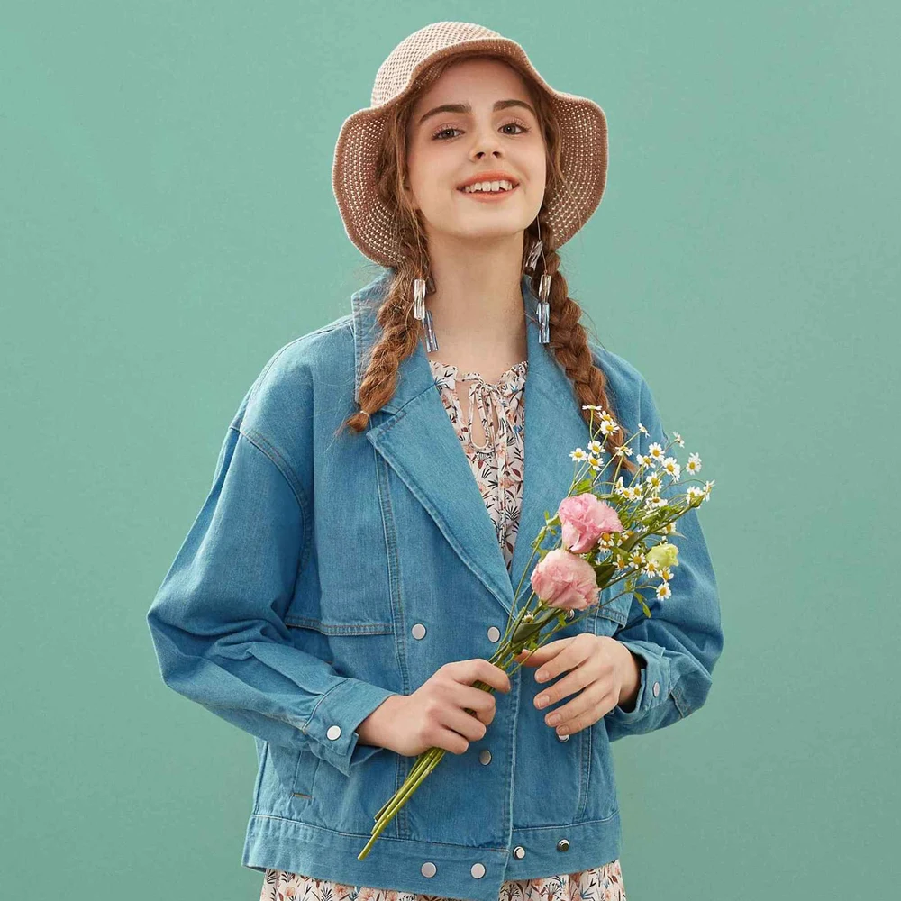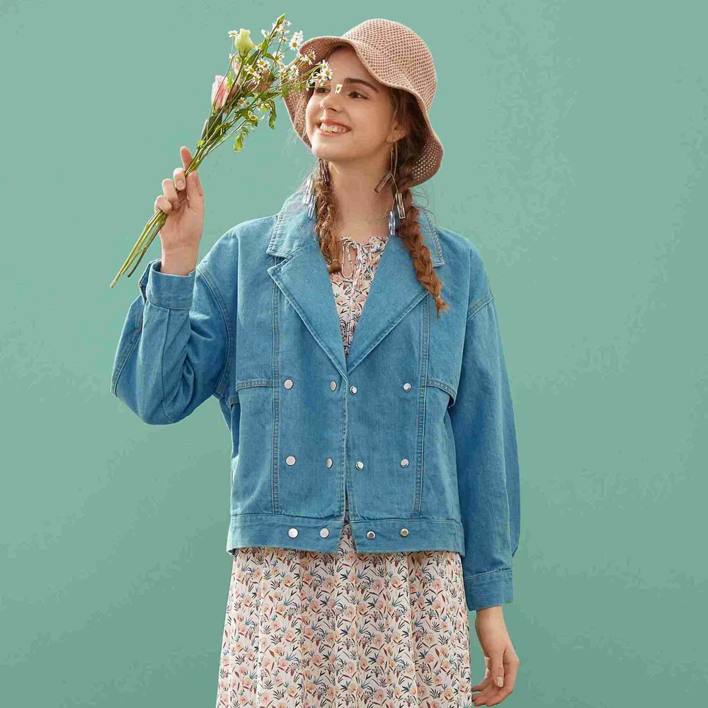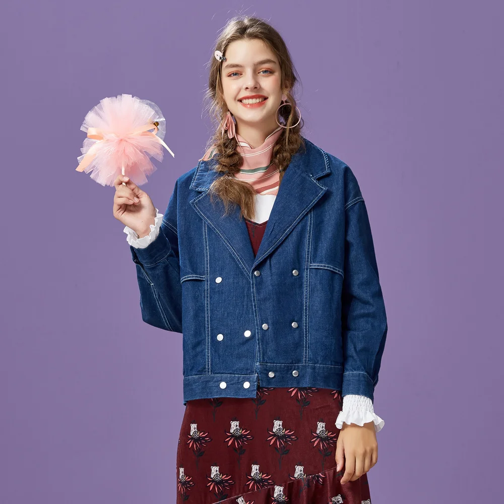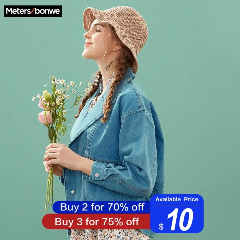 Metersbonwe Jean Jacket for Women Turn-down Collar Loose Blue Fashionable Women Coats Female Outwear Denim Feminine Casual Sty :Click Here