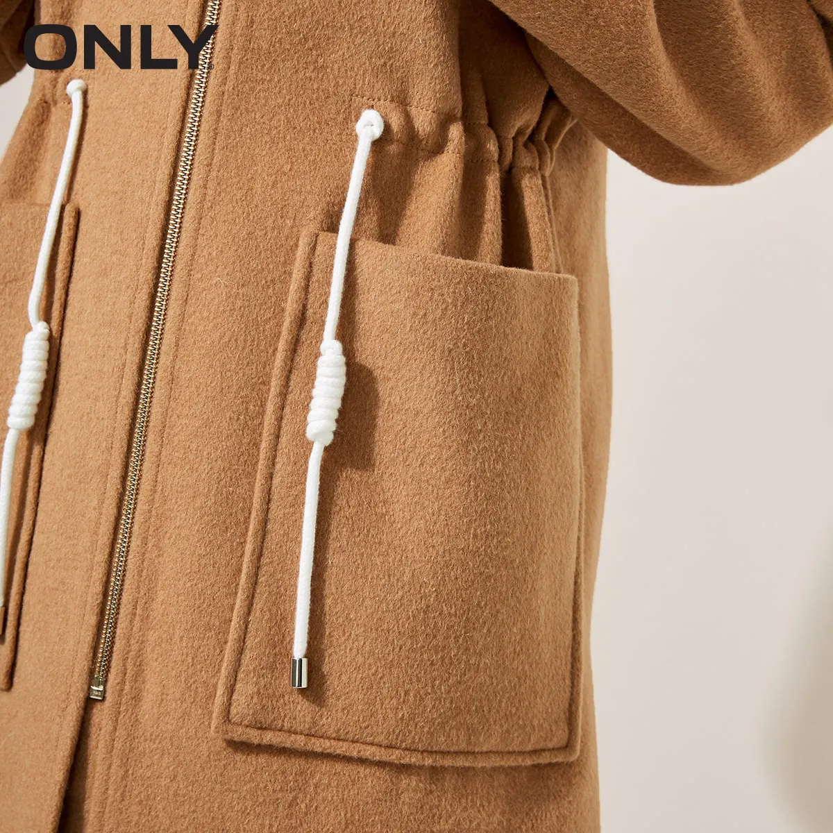 ONLY loose hooded draw string cotton Long Trench coat Windbreaker | 118336573 :Click Here