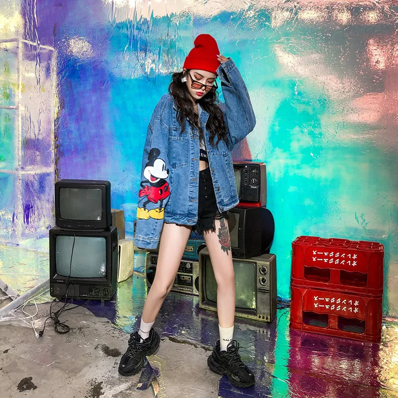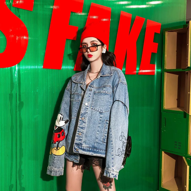 Latest Product Hohe qualität herbst modelle wilden trend persönlichkeit lose denim damen jacke war dünn cartoon st