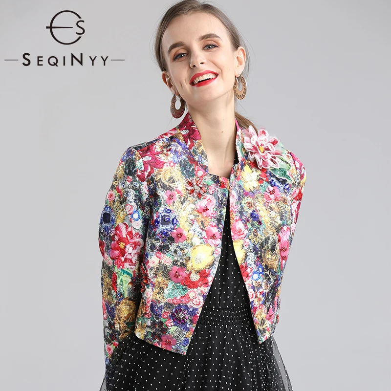 New Product SEQINYY Luxus Jacke 2020 Frühling Herbst Neue Mode-Design Perlen Pailletten Kristall Bunte Blumen D