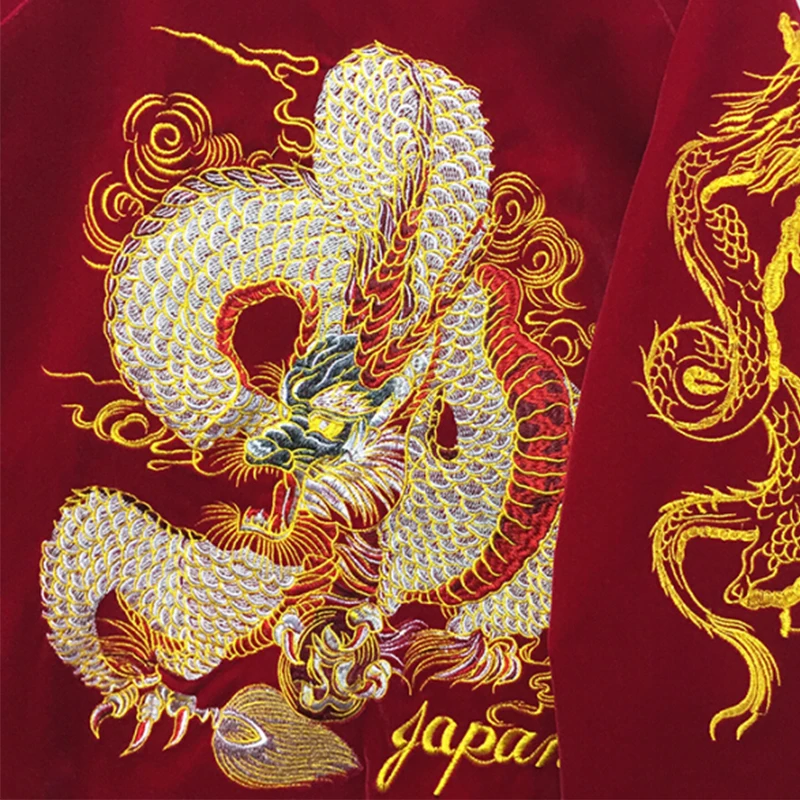 Goods Japan wind design HOHE qualität streetwear baseball uniform drachen bestickte Cord zipper jacke fra