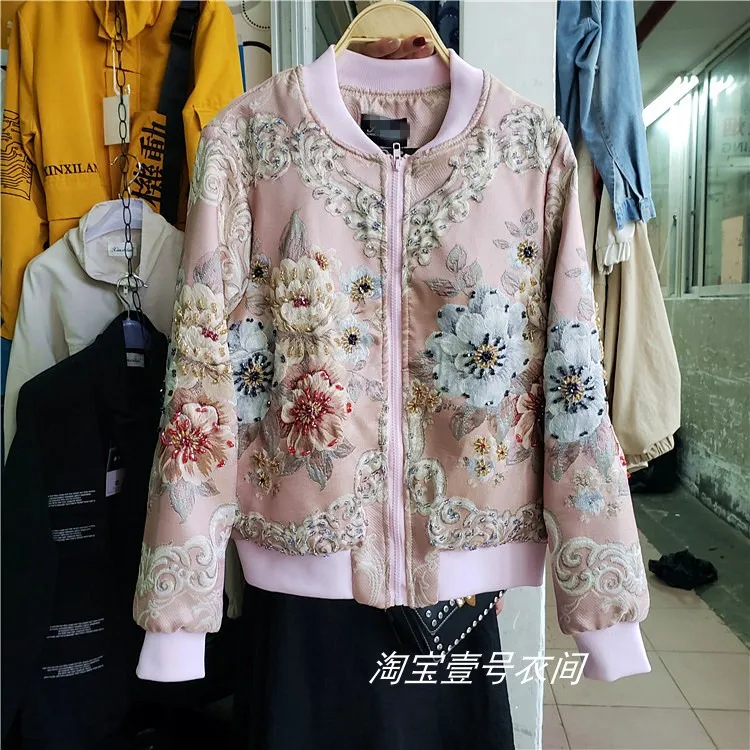Best Product Herbst Jacke Frauen Neue Retro Palace Jacquard Schwere Bestickt Perlen Baseball Jacke Weibliche Bom