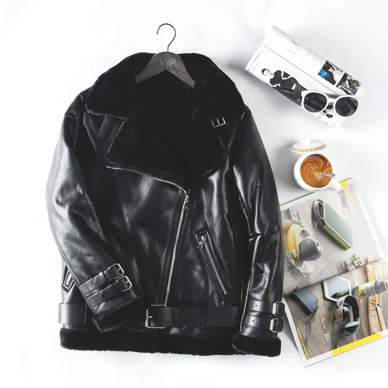 2019 Winter Leather Sheepskin Coats Inner Faux Fur Pujackets Female Thicken Warm Slim Overcoats Women Leather Fake Fur Outwear :Click Here