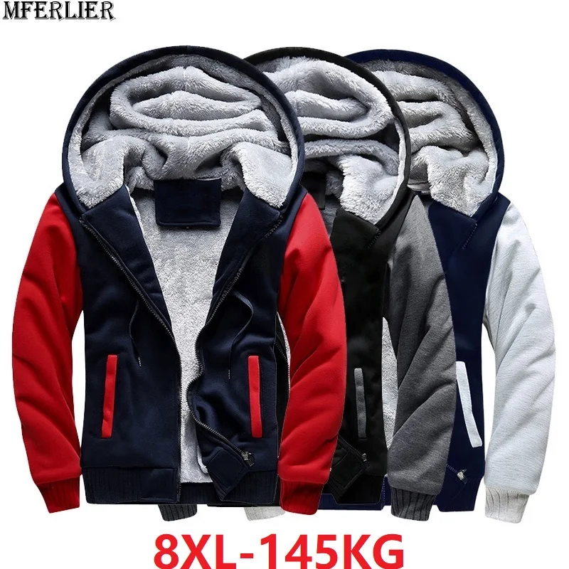 winter men thick Sweatshirts fleece hoodies hooded jackets warm 8XL 9XL 10XL large size big 5XL black Sweatshirt zipper 150KG 54 :Click Here