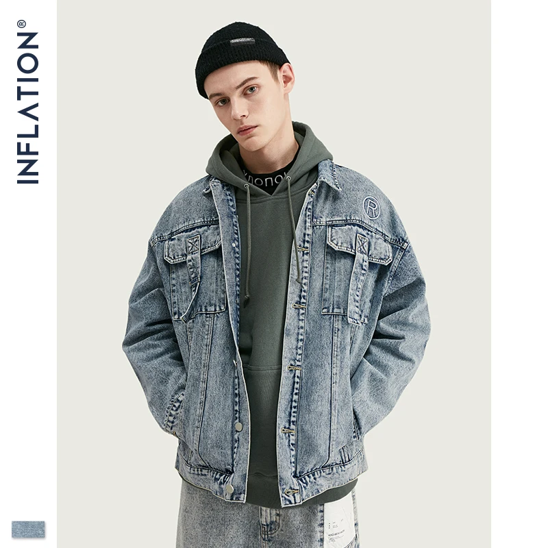 INFLATION Denim Men Jacket Loose Fit Mens Jeans Denim Jacket Poker Oversized Men Streetwear Denim Jacket In Stonewash Blue 9717W :Click Here