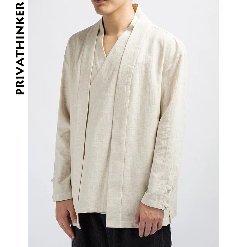 Sinicism Store Men Clothes 2019 Cotton Linen Casual Black Shirts Man Long Sleeve Shirts Male Chinese Fake Two Pieces Windbreaker :Click Here
