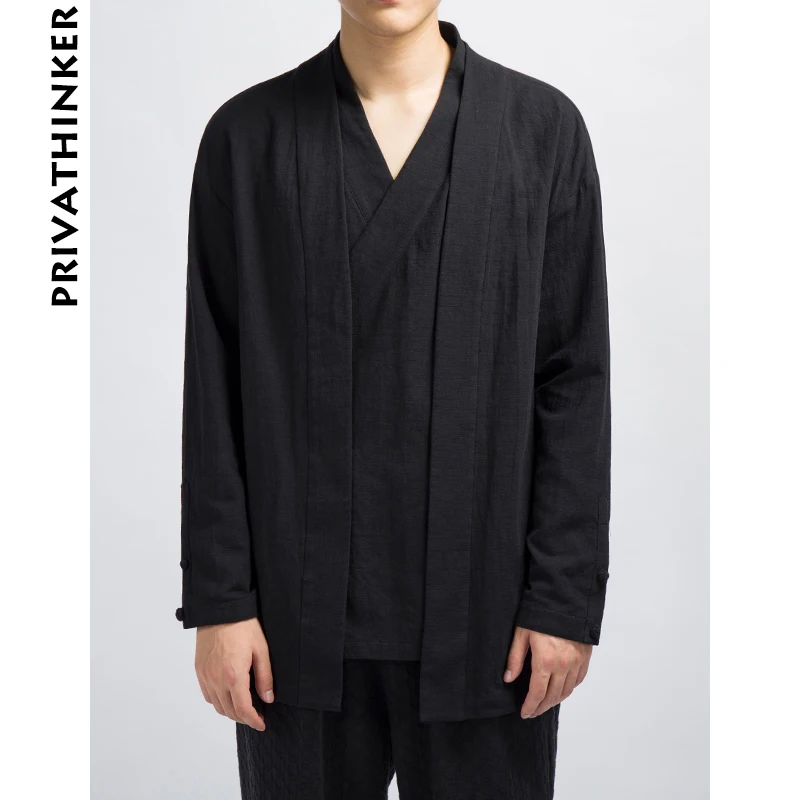 The Latest Sinicism Speicher INS Männer Kleidung 2019 Herren Baumwolle Und Leinen Solide Kausal Kimono Schwarz
