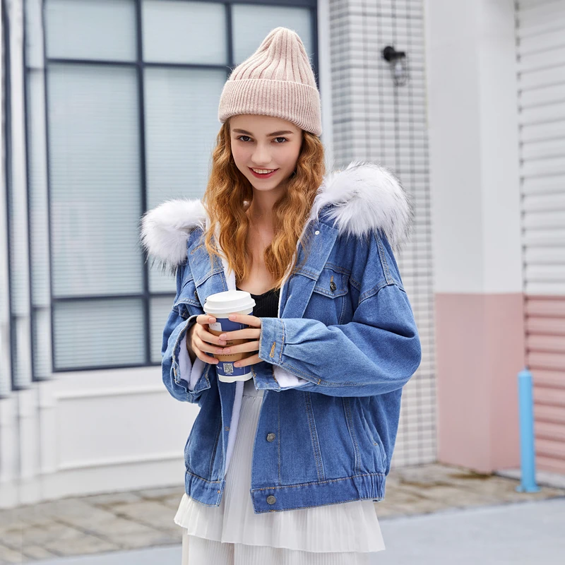 Big Faux Fur Collar Winter Jacket Women Oversized Batwing Sleeve Denim Jackets Wool Liner Jeans Coat Velvet Warm Jaqueta Hoodies :Click Here
