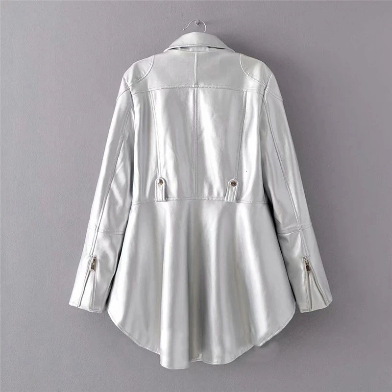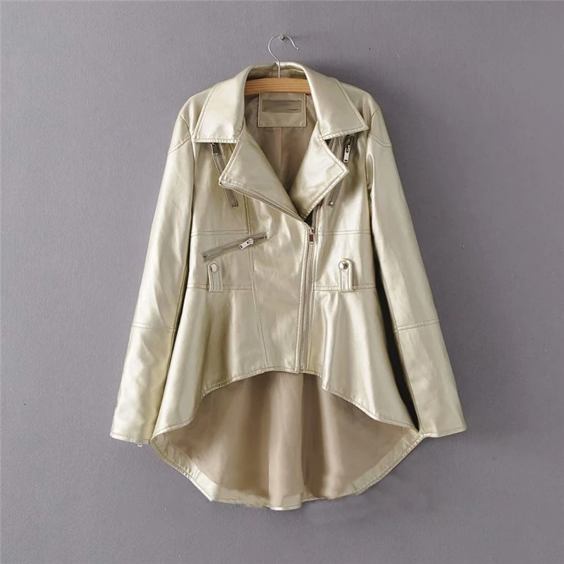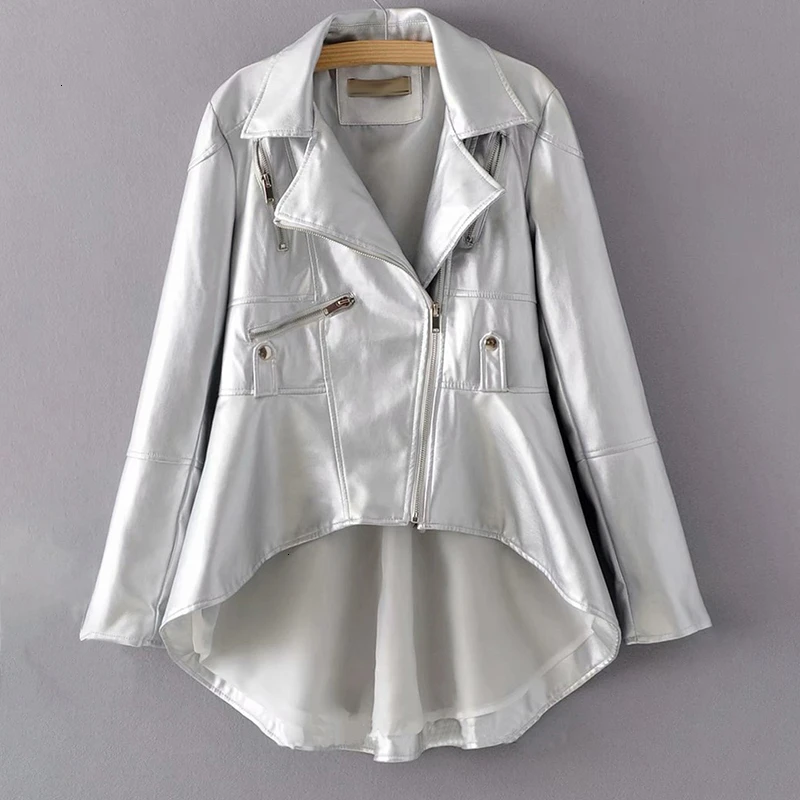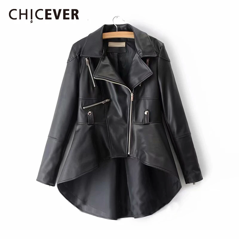Trend CHICEVER PU Leder frauen Jacke Revers Kragen Langarm Asymmetrische Plus Größe Mantel Lässig Weiblic