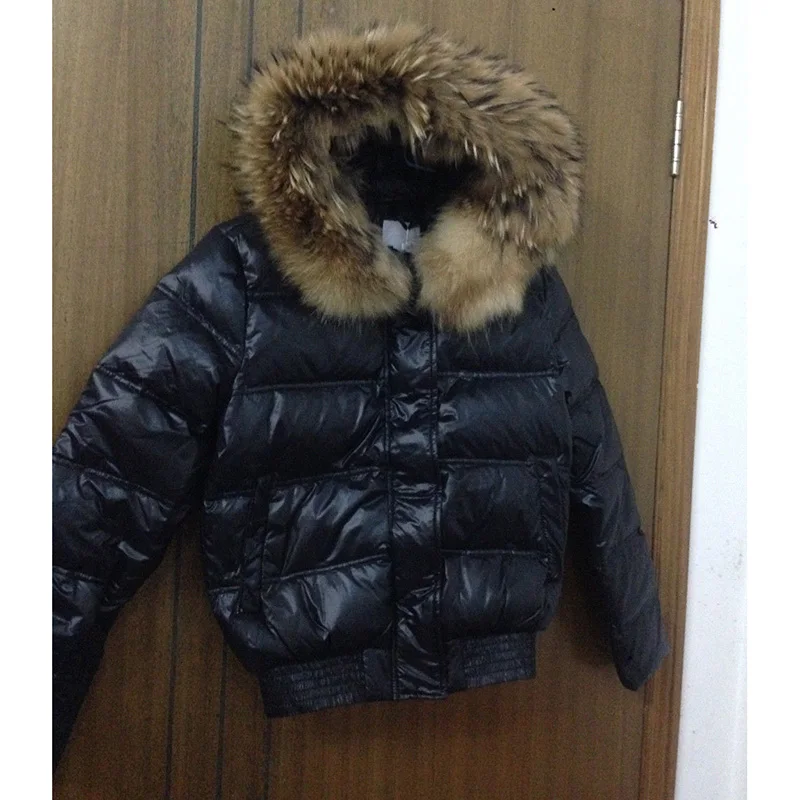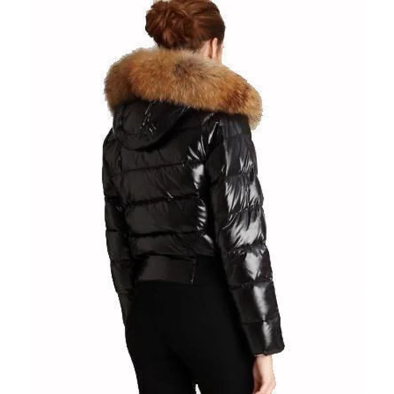 2018 Winter Down Jacket Fashion Raccoon Fur Hood Warm Jacket Coat Short Coat Long Sleeve Black Red Women Jacket :Click Here
