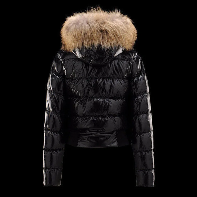 2018 Winter Down Jacket Fashion Raccoon Fur Hood Warm Jacket Short Coat Long Sleeve Black Red Jacket Women :Click Here