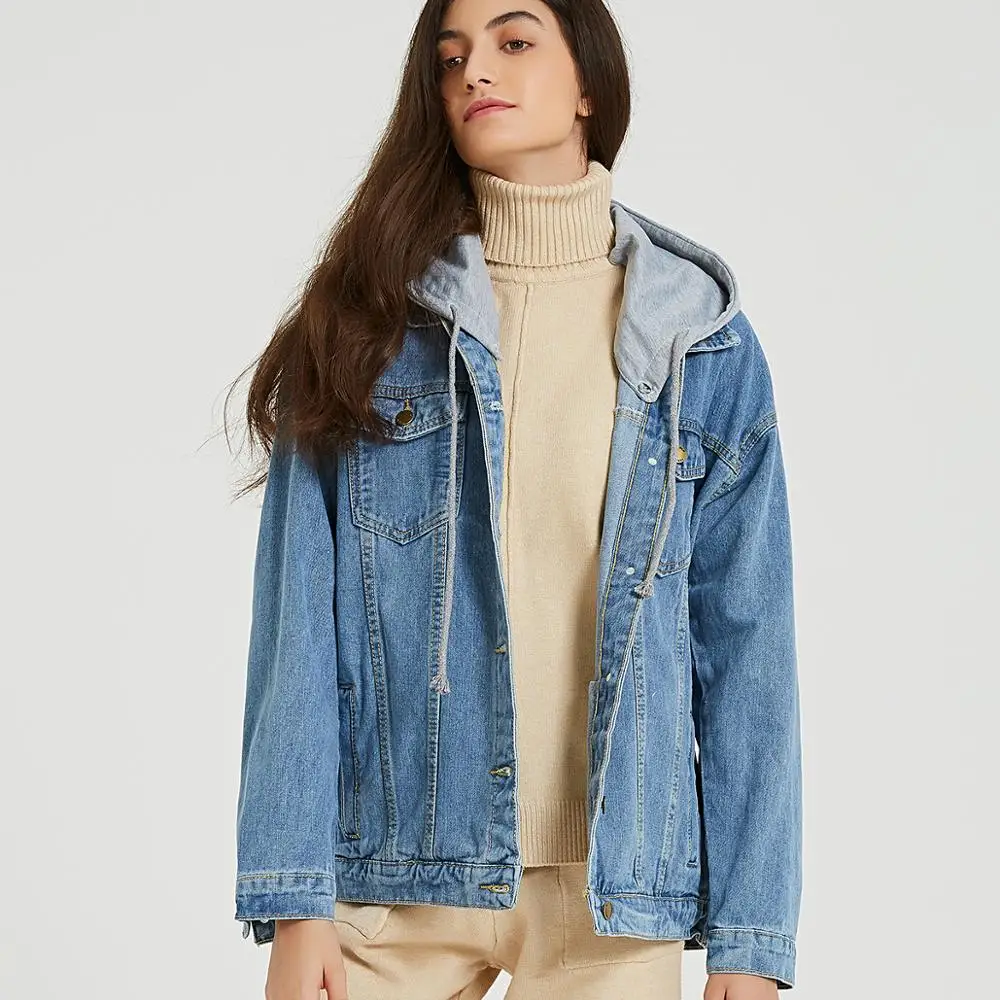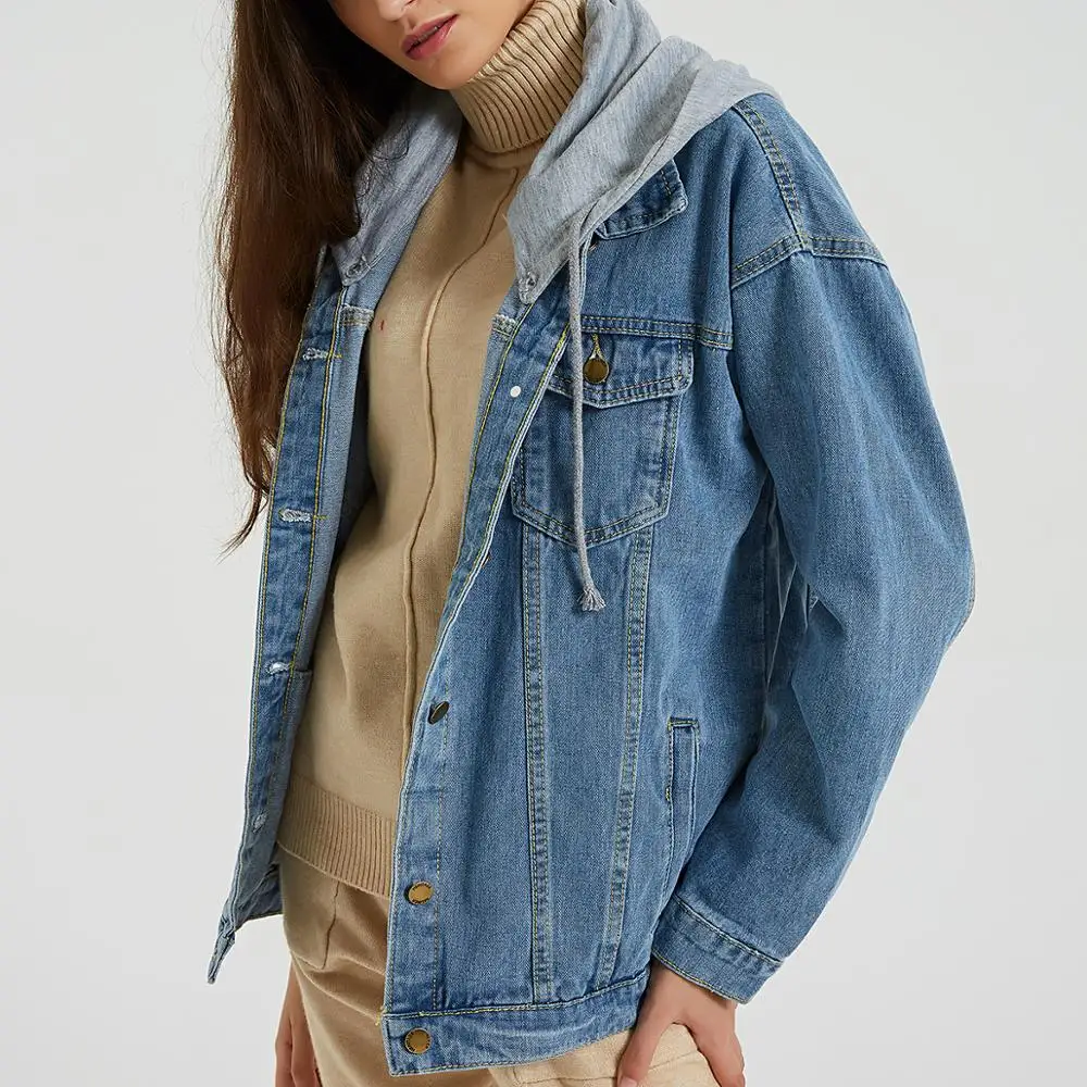 Trend Wixra Solide drehen-unten Kragen Klassische Blau Mit Kapuze Jacke für Weibliche Lose Beiläufige Fra