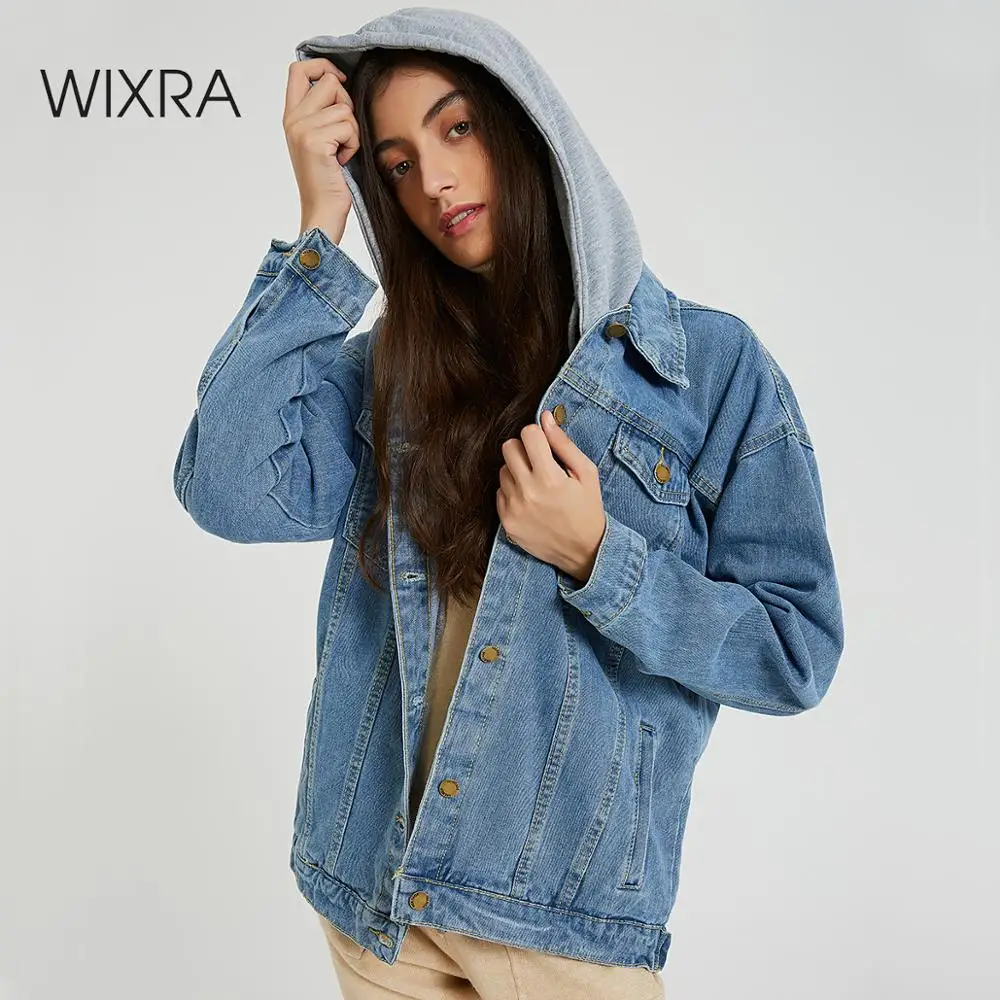 Wixra Solid Turn-down Collar Classic Blue Jean Jackets Loose Casual Women Denim Outwear Coats 2019 Autumn Spring :Click Here