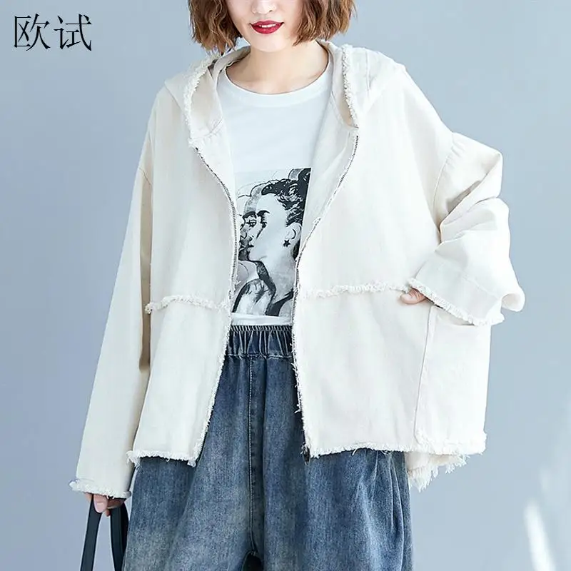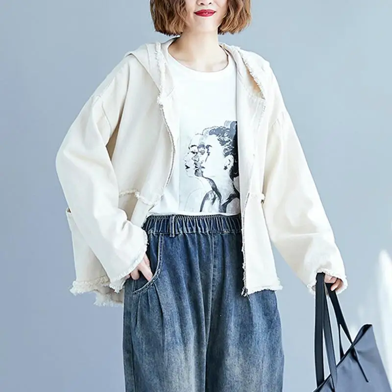 New Product Plus Größe Denim Mit Kapuze Jeans Jacke Mantel Frauen 2019 Herbst Veste Jean Mäntel und Jacken Über