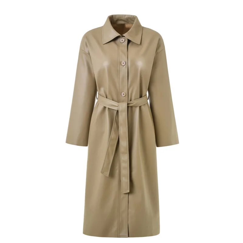 LANMREM 2020 New Spring Fashion Long Type PU Leather Windbreaker Loose Single-breasted Long Coat Black Women's Clothing YG625 :Click Here
