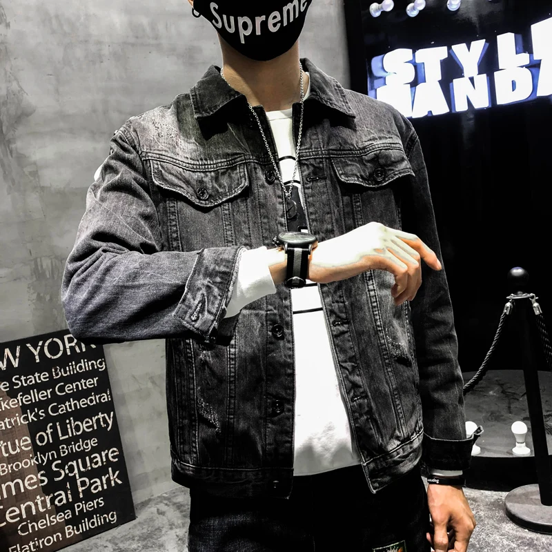 YASUGUOJI New 2019 Mens Ripped Denim Jacket Punk Winter Jacket Hip Hop Printed Patchwork Hole Jean Jacket Men Denim Jackets :Click Here