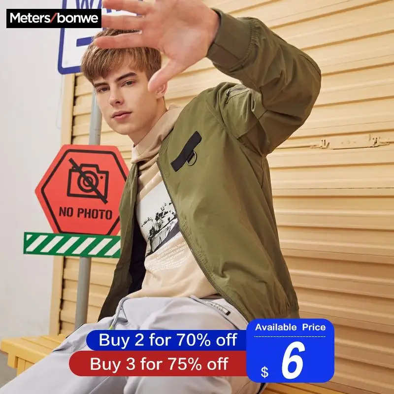 Best Price Metersbonwe männer Casual Jacken Männlichen Mode Einfarbig Jacke Männer Mantel Baseball Jacken männ