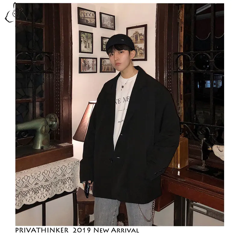 Privathinker Men Autumn Korean Streetwear Blazers Jacket 2019 Mens Harajuku Blazer Male Long Sleeve Blazer Loose Fashion Clothes :Click Here