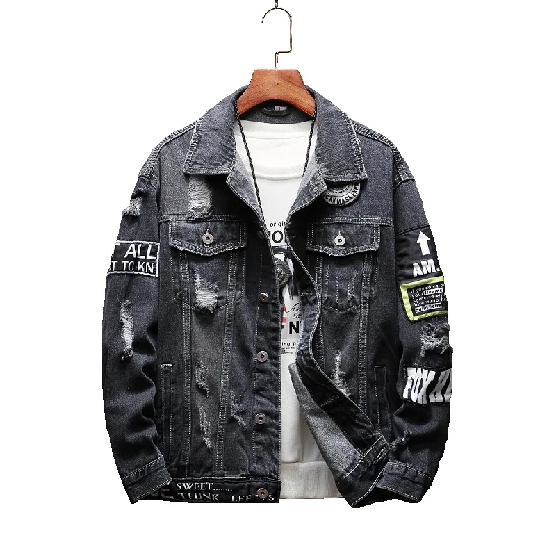 Best Price Herren Jacken Und Mäntel Schwarz Löcher Denim Mäntel Neue Mode Männer Frühling Herbst Lose Beiläufi