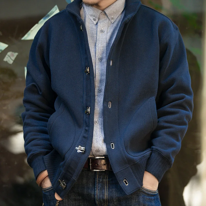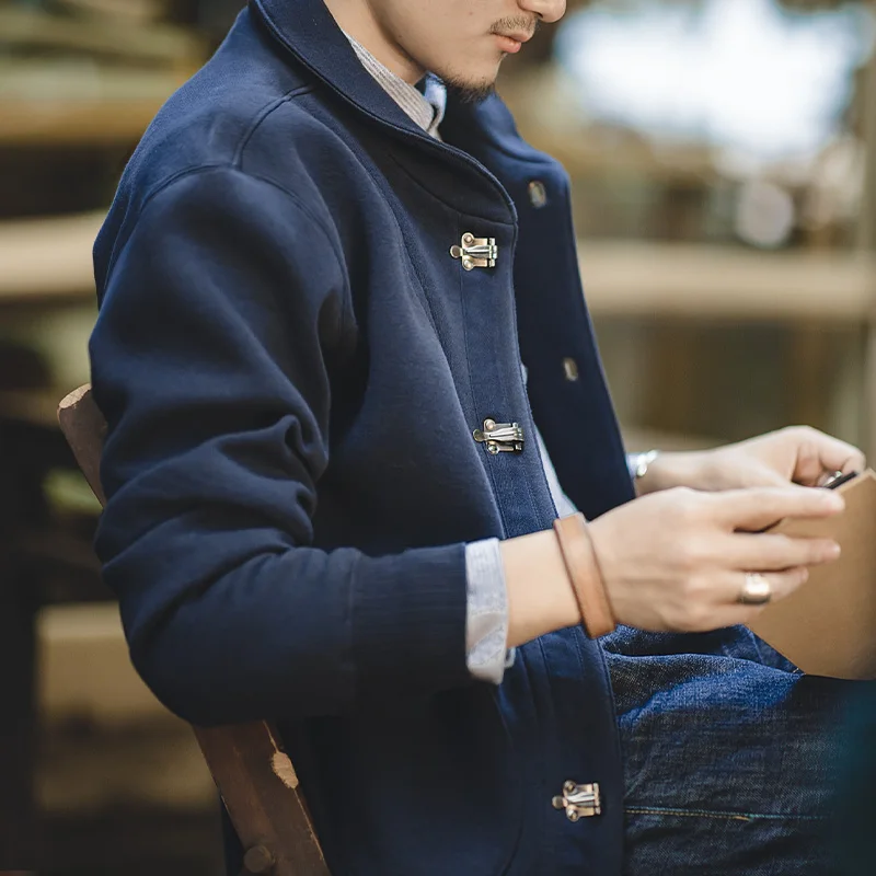 Best Price Männer Retro Schal Hals Clip Taste Unten Geschröpft Gefüttert Herbst Winter Jacke Mit Taschen Navy