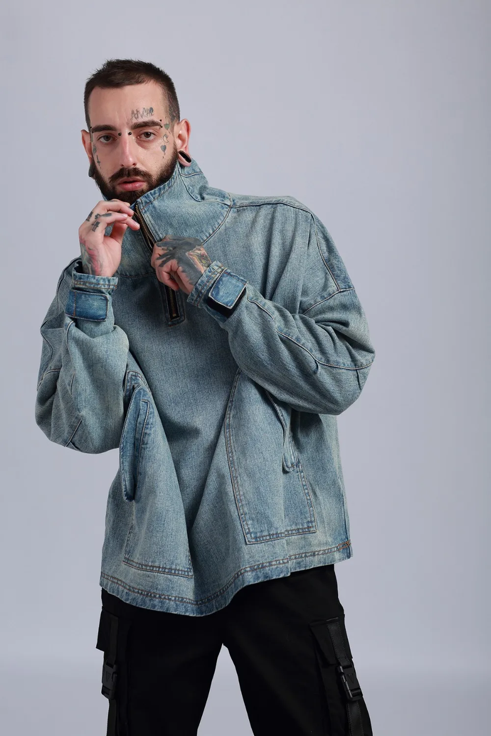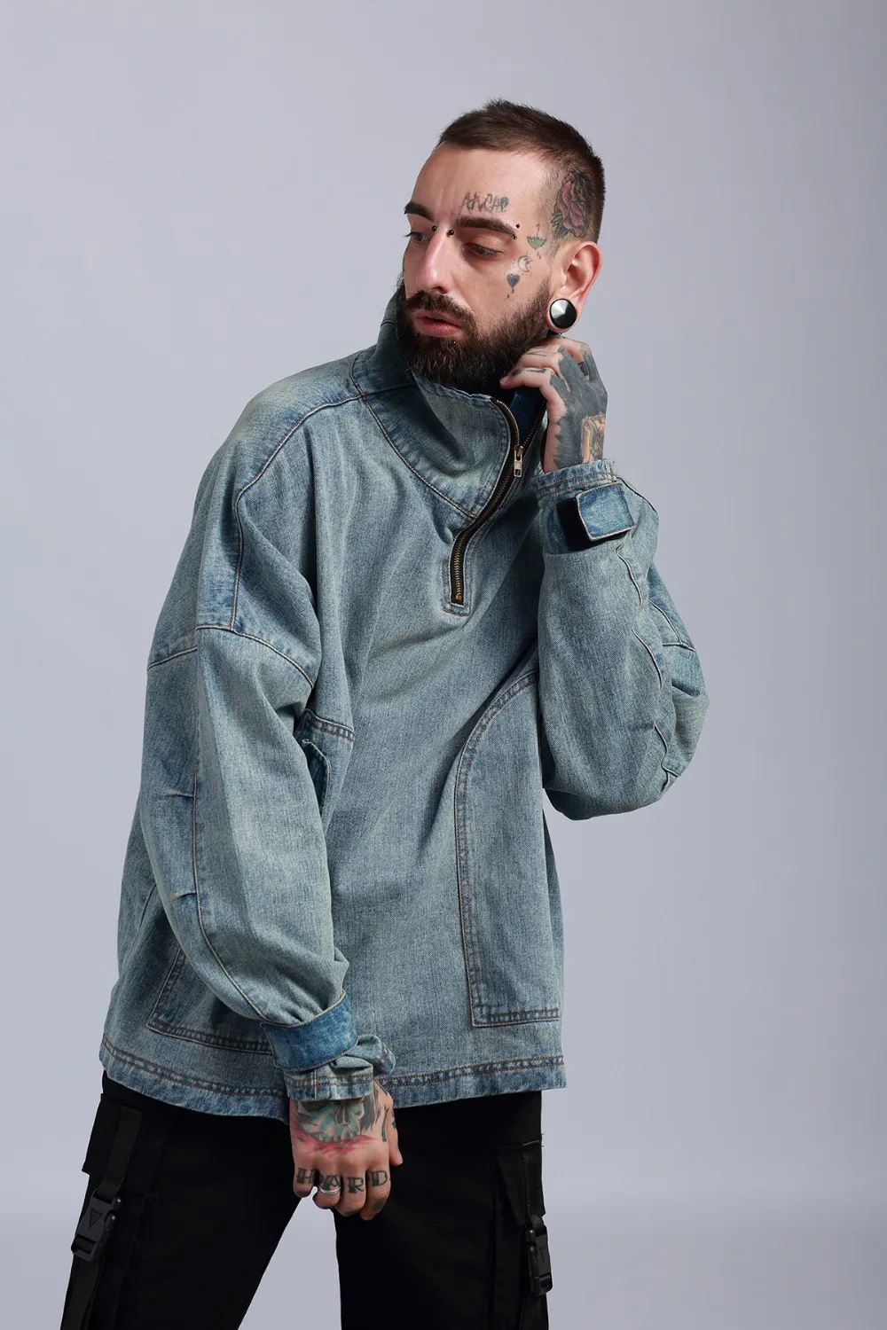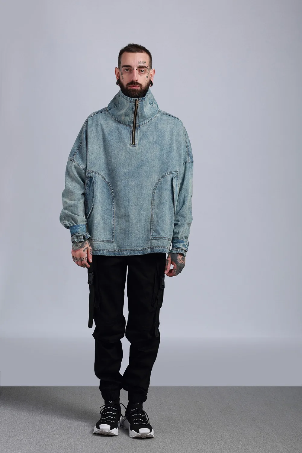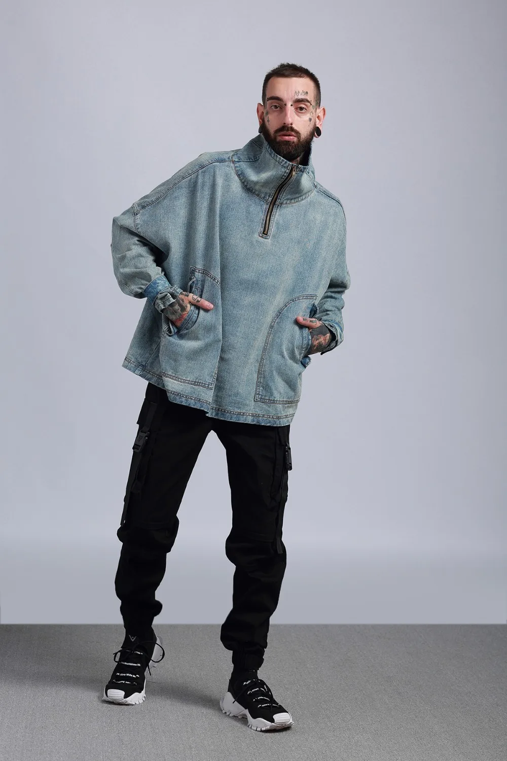 2018 New Arrival Denim oversize high street Loose blue jeans Jacket Hip Hop vintage Men Turtleneck Casual Jeans Hoodies Jackets :Click Here