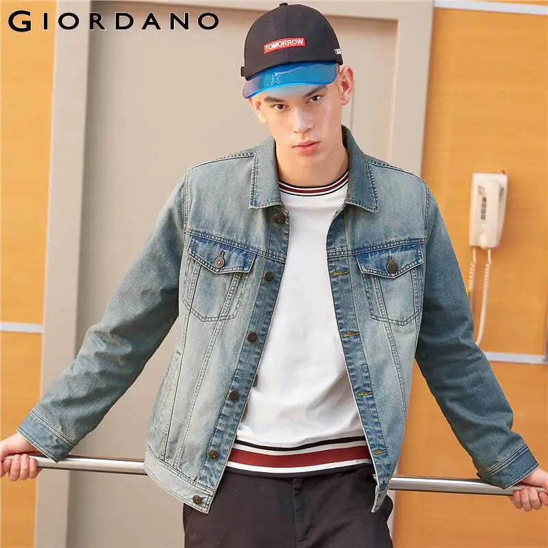 Collection Giordano Männer Fracht Denim Jacke Männer Patch Taschen Baumwolle Polyester Jacke Mode Denim Jacke