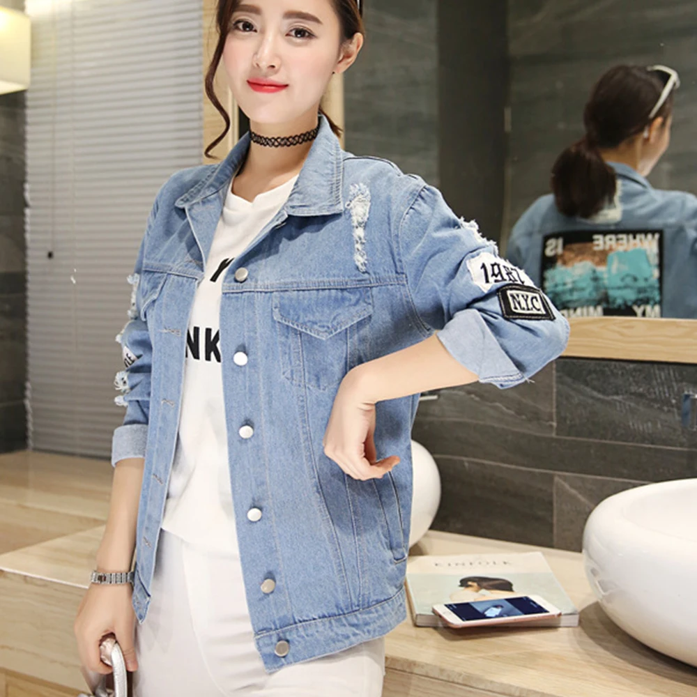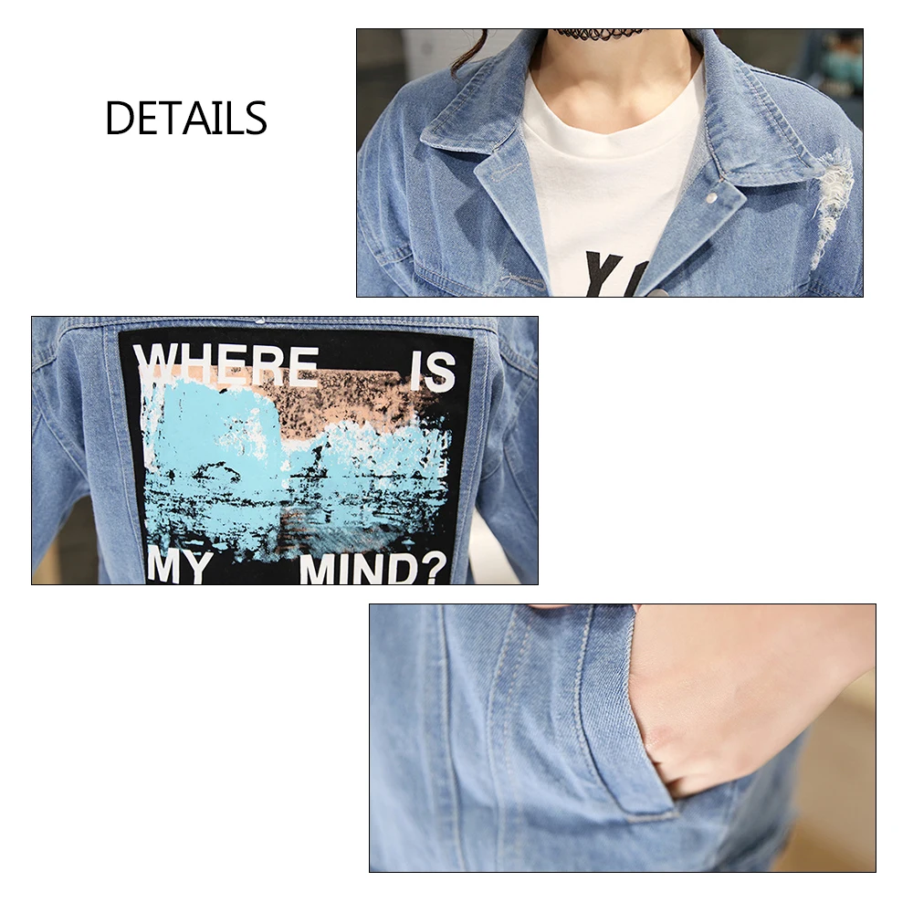Big Deal Wo ist Mein Geist Denim Jacke Frauen drehen-unten Kragen Langarm Loch Jacken Mäntel Frühling Herbst