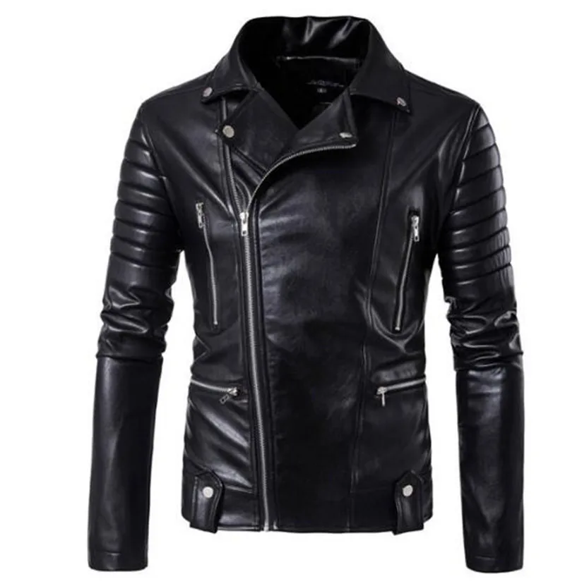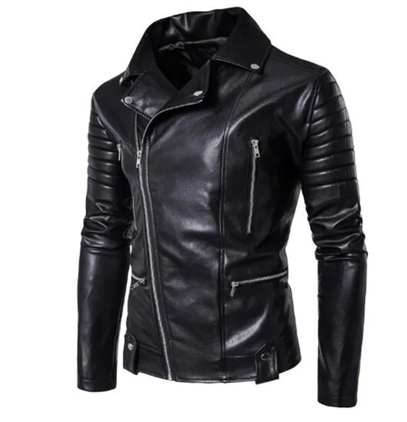 Popular Neue Retro Vintage Motorrad Jacken PU Leder Männer Slash Zipper Moto Jacken Revers Biker Faux Leder