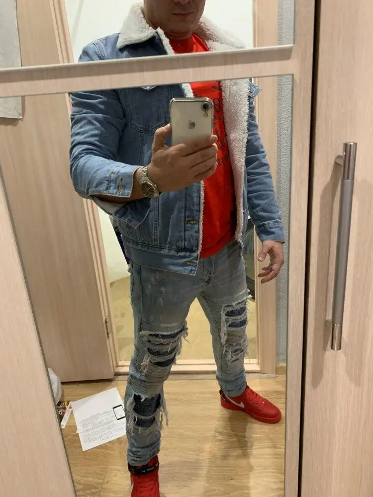 New shelves Winter Men's Denim Jacket Fashion Warm Wool Lining Thicken Denim Jacket Coats Large Size 6XL Light Blue Denim Jacket :Click Here
