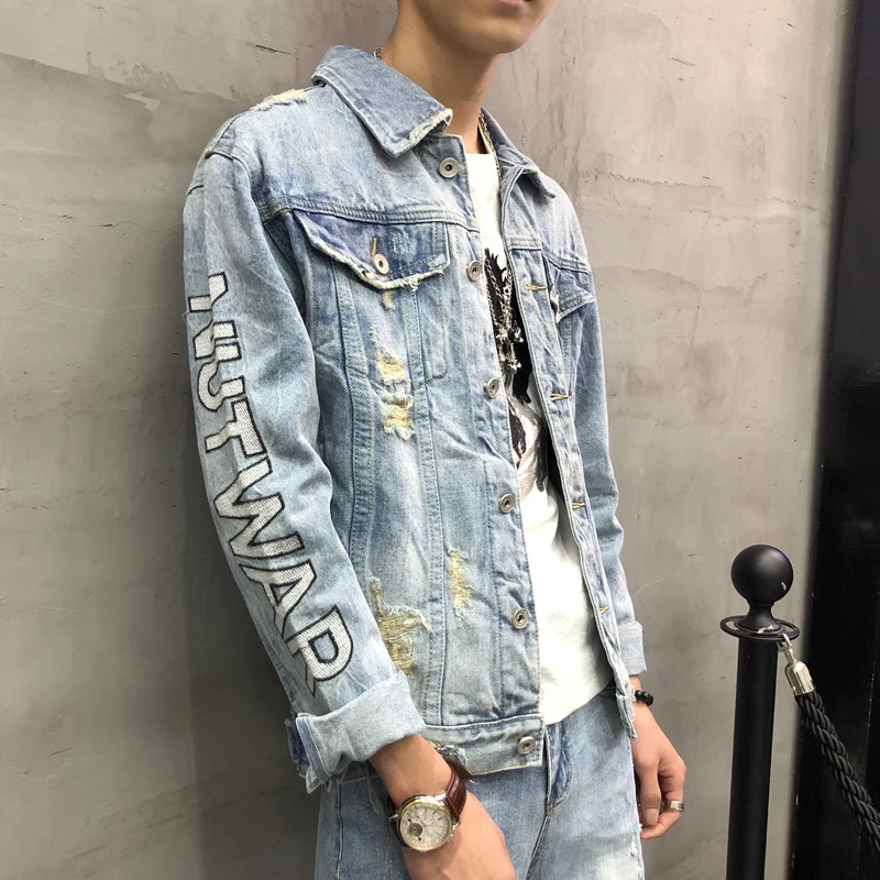 Men Hole Denim Jacket Men Coats Embroidery Jeans Jacket Outwear Slim Fit Male Patch Jacket Coat Jaqueta Masculina Size 3XL :Click Here